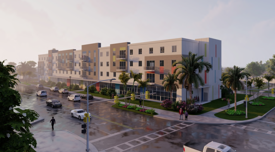 The CRA began acquiring and assembling land at the southeast and southwest corners of Westgate Avenue at Seminole Blvd. for the redevelopment of the “Heart of Westgate” in the early 2000’s. Danza Group of Westgate was the successful responder to a 2021 RFP to redevelop the site. The developer closed on the CRA-owned properties in early 2025, and is now in the permitting process. The project supports 44 two and three-bedroom multifamily residential rental units in 4 stories with 10,615 sf. of ground floor government and medical office– the CRA’s offices will occupy 4,000 sf of space on the ground floor once.